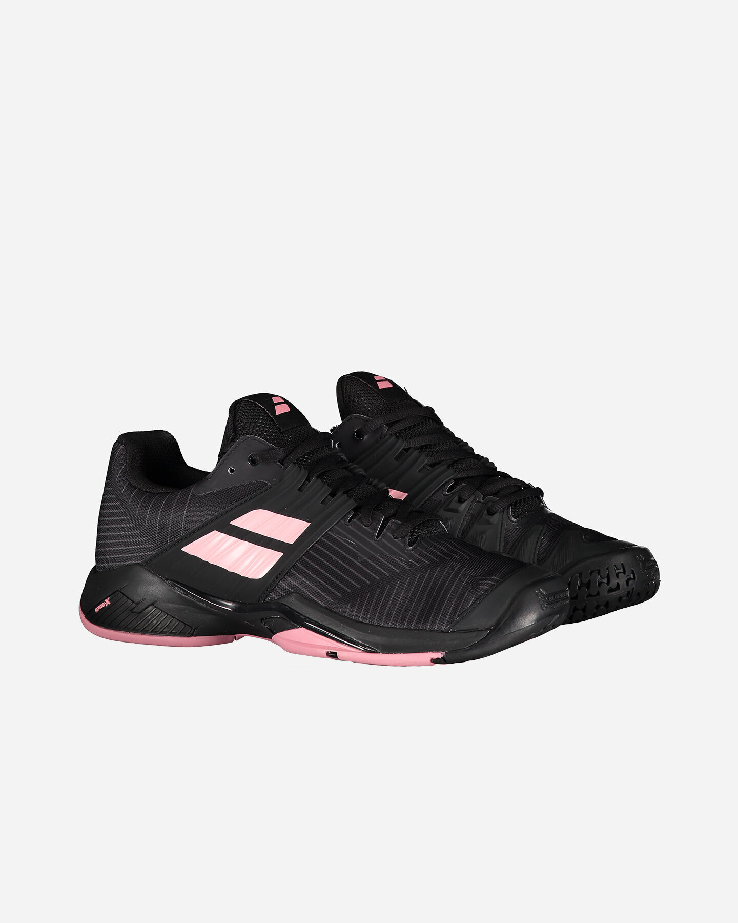 Scarpe da tennis e da padel Babolat Propulse da donna, colorazione nero e rosa.
